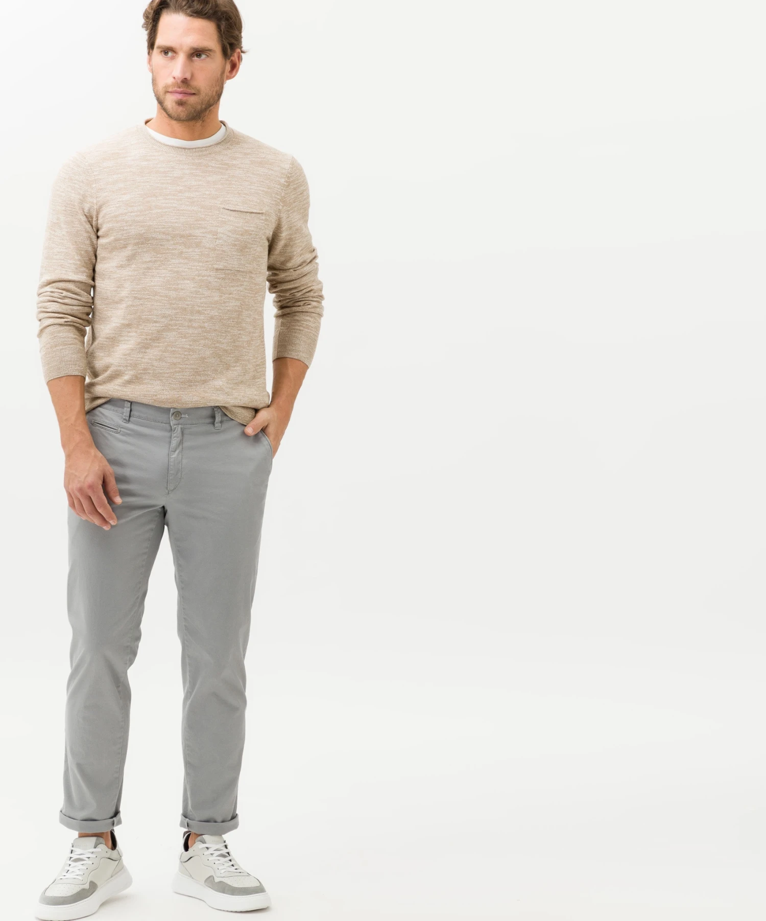 Ein Trend-Item für Herren ist der Style FABIO IN. Smart mit Hemd oder modern mit Pullover – die Chino gefällt im klassischen und legeren Look. Die Modern Fit Herrenhose ist modisch und vielseitig mit schlanker Passform und regulärer Bundhöhe. Eine sportive Optik erhält die Hose insbesondere durch das aufwendige Taschendesign. Zusätzlich ist sie mit Kunstlederbesatz und Ziernieten gestaltet. Selbstbewusst und spannend ist die Struktur, die mit ihrem effektvollen Warenbild das Material belebt. Der nachhaltige, pflegeleichte und hautfreundliche Baumwollmix bietet zudem bei dieser Chino ein erstklassiges Tragegefühl.