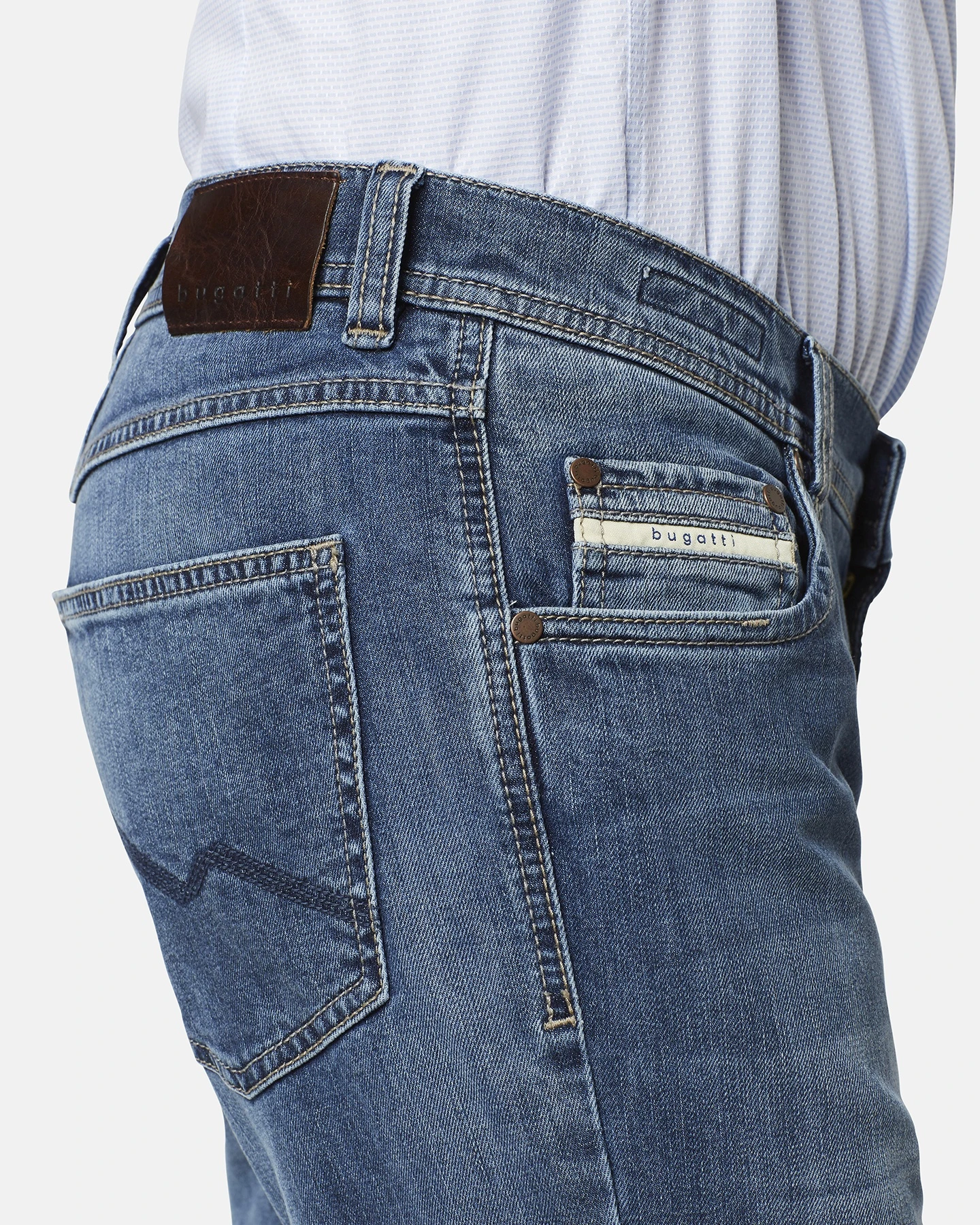 Feinste, hochwertige Baumwolle mit Stretch-Anteil verleiht der Jeans Münster von BUGATTI eine erstklassige, kühle Qualität.