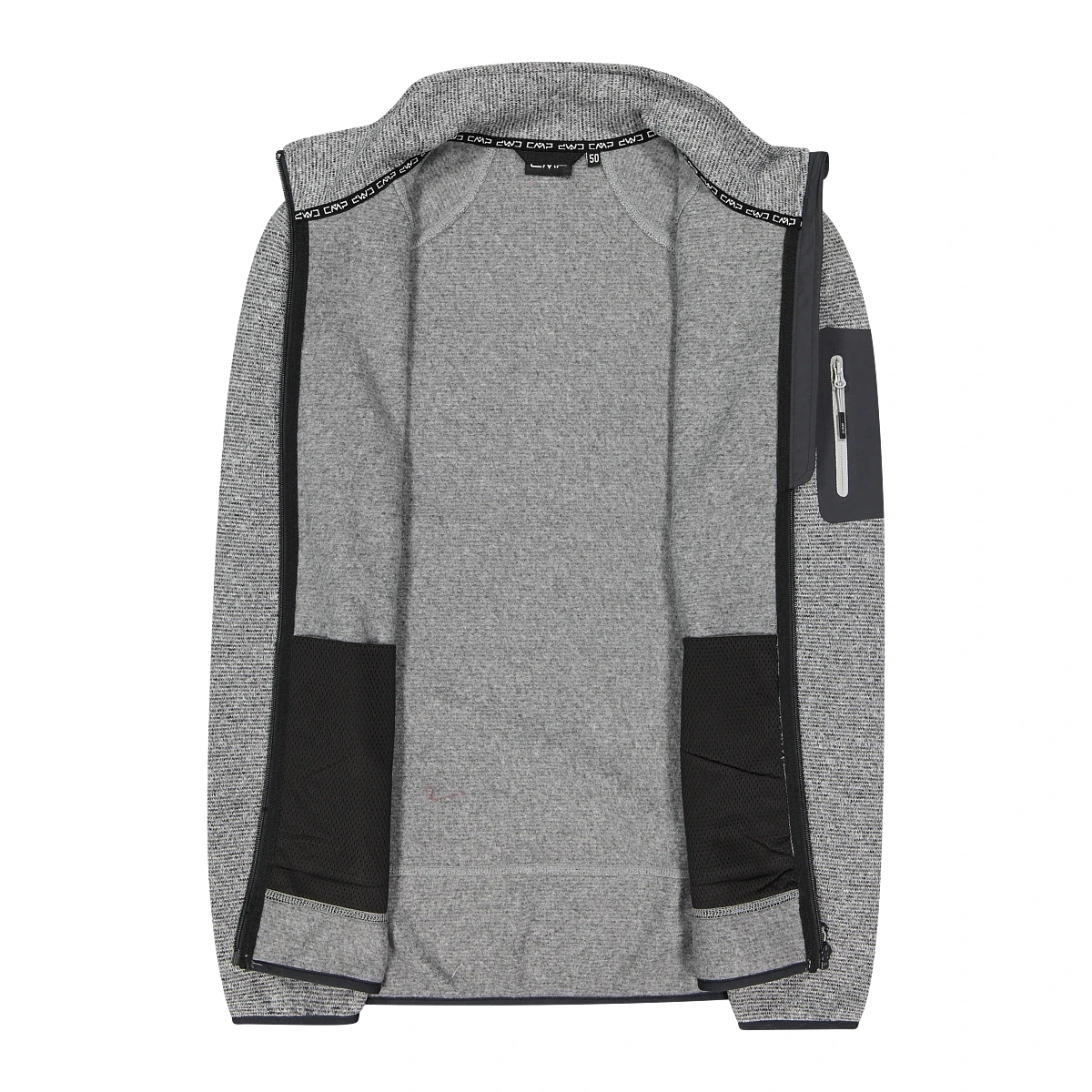 Die Fleecejacke Knit-Tech ist eines der klassischen Kleidungsstücke von CMP und entstand dank der tiefverwurzelten Handwerkstradition der Gruppe Fratelli Campagnolo. Das Gewebe ist speziell verarbeitet, was das Fleece ähnlich wie melierte Wolle erscheinen lässt und ihm so ein typisches Outdoor-Flair verleiht. Mit Reißverschluss vorne, innen mit winddichtem Einsatz und abriebfester Hülle. Zwei seitliche Taschen mit Reißverschluss und eine hitzeversiegelte Tasche am ärmel. Saum und Bündchen sind elastisch, um auch bei schwierigen Bewegungen ein gutes Anliegen am Körper zu gewährleisten. Ein perfektes Kleidungsstück als zweite Schicht im Winter oder als äußere Schicht im Sommer.
