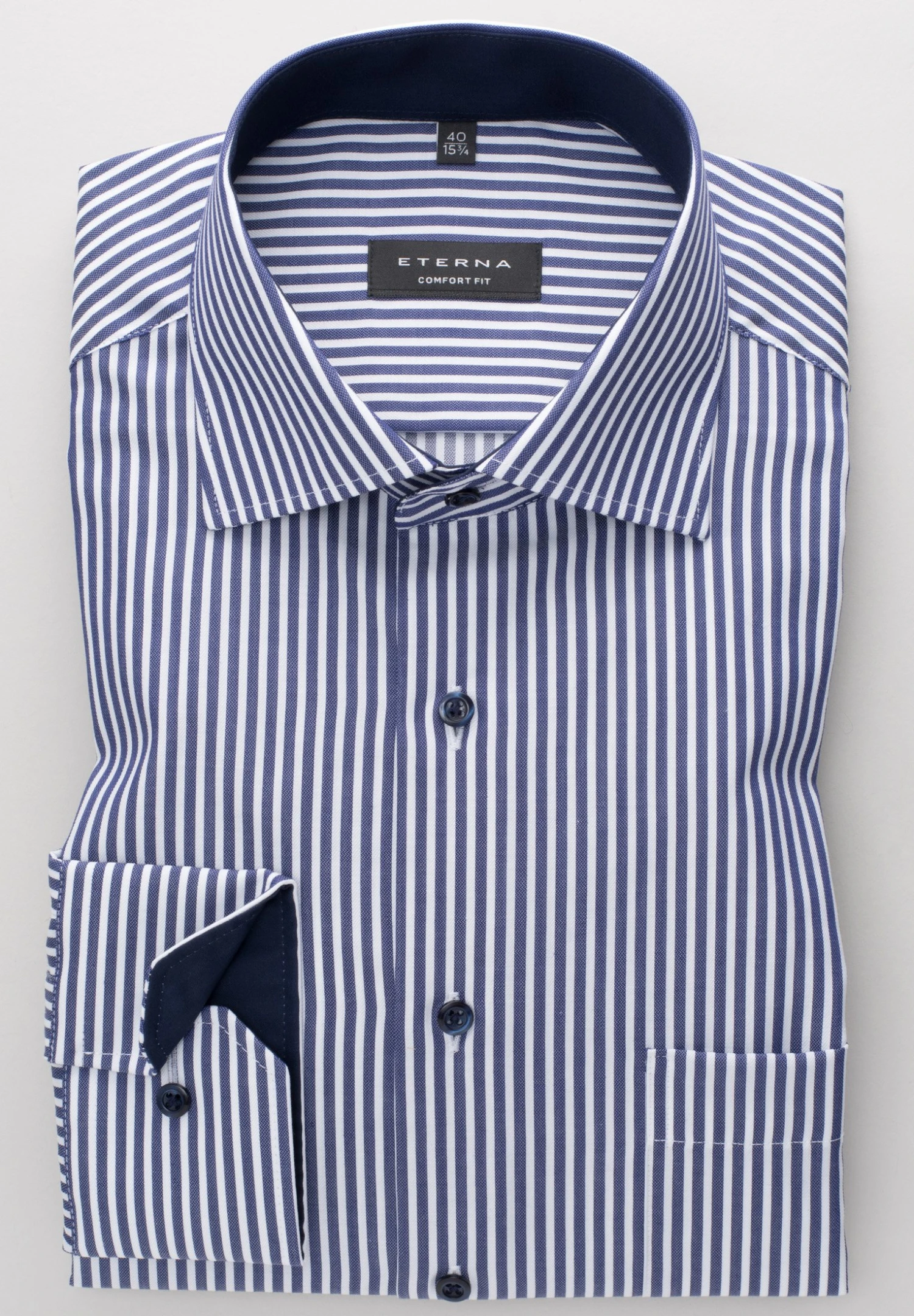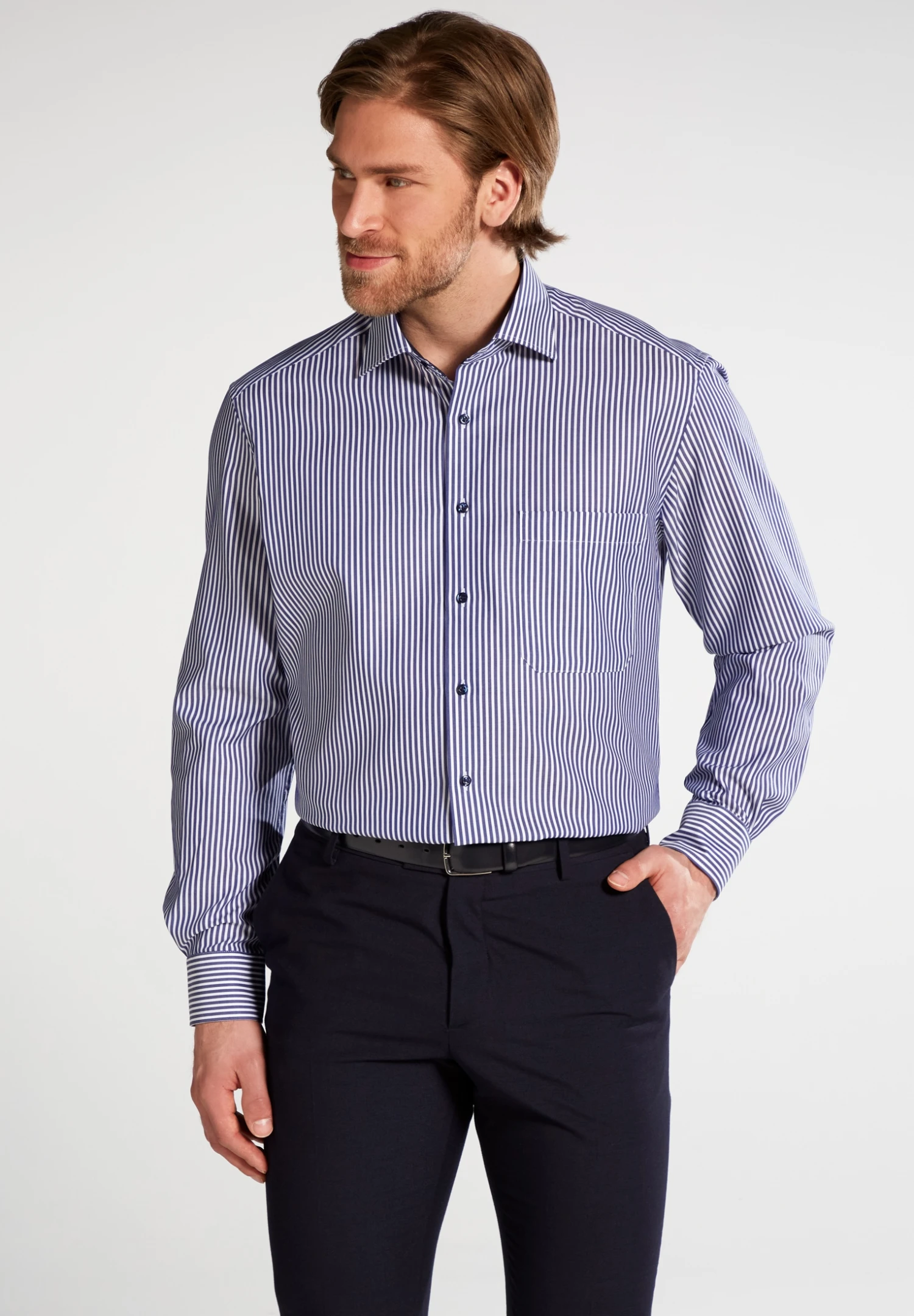 Ein Must-Have aus unserer aktuellen Kollektion – denn ein Hemd im Streifen-Dessin gehört einfach in jede gut sortierte Garderobe. Mit diesem Herrenoberhemd bringen Sie sportliche Eleganz in Ihren Kleiderschrank. Die Patchungen am Krageninnensteg und an den Innenmanschetten verleihen diesem Businesshemd eine besonders moderne Note. Die bequeme Schnittführung, der modische Classic Kent-Kragen und die praktische Brusttasche geben dem Hemd den letzten Schliff. Kombinieren Sie dieses Twill-Hemd (100% CO, bügelfrei) wie es Ihnen gefällt – zum Anzug im Büro oder lässig in der Freizeit zu Jeans und Sneakers. Sie werden viele Komplimente dafür bekommen. Worauf also noch warten? Bestellen Sie noch heute dieses stylische Langarm-Hemd und überzeugen Sie sich von unserer meisterhaften Handwerkskunst.