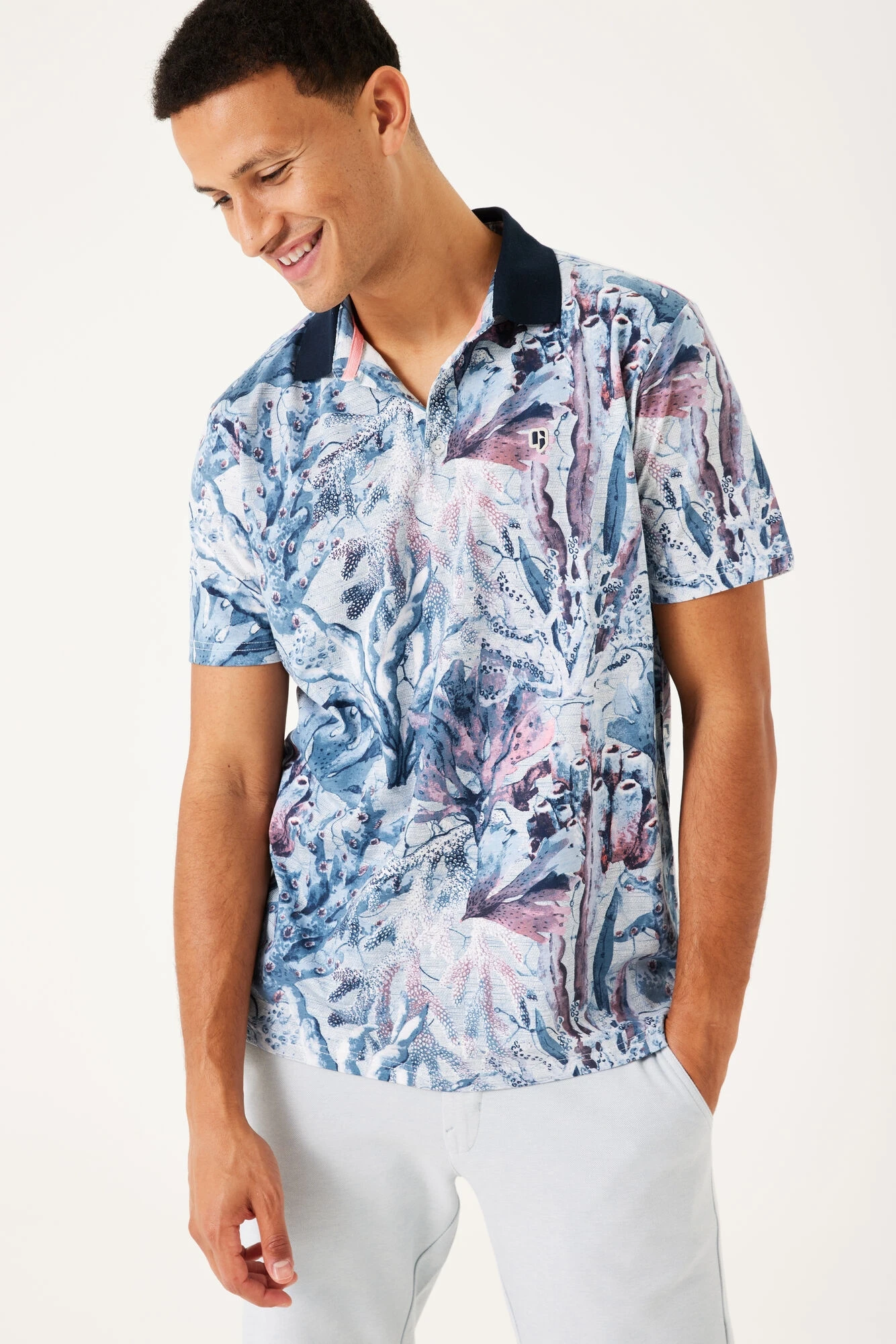 - Polokragen mit halber Knopfleiste