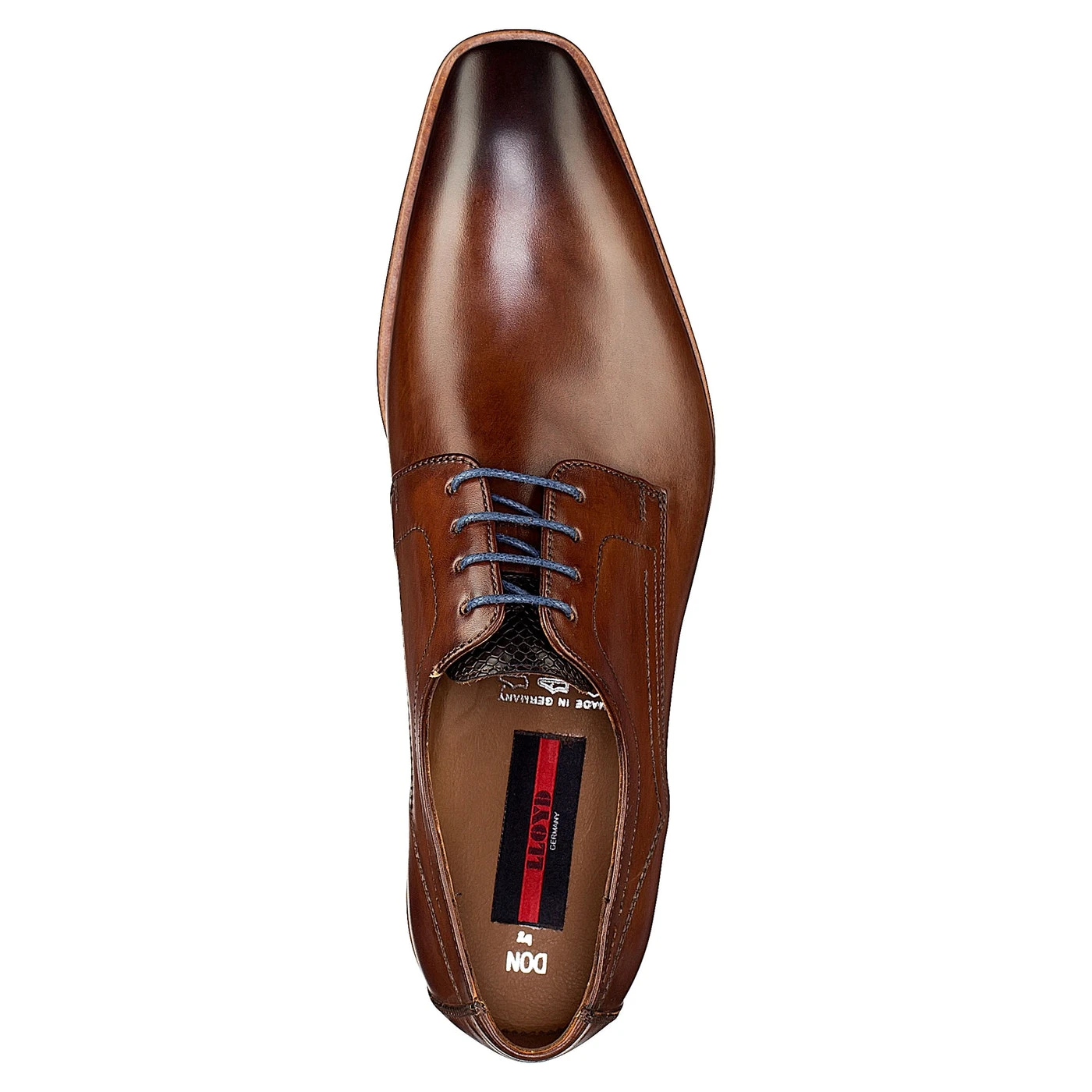 Schlank geschnittener, moderner Halbschuh. Das erstklassige Design wird durch die harmonische Materialkombination aus Glattleder und Reptilprint ergänzt. Feine Farbdetails wie farbige Schnürsenkel, die blaue Zwischensohle im Vorfußbereich und die Gummilaufsohle mit Lederelementen unterstreichen den modischen Look.