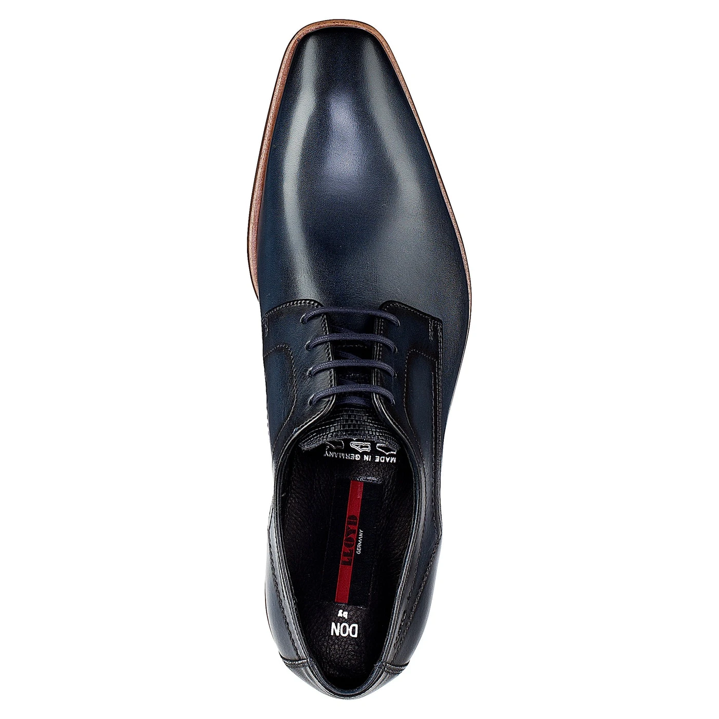 Der schlank geschnittene, moderne Halbschuh besticht durch eine harmonische Materialkombination aus Glattleder und Reptilprint sowie feinen Farbdetails.