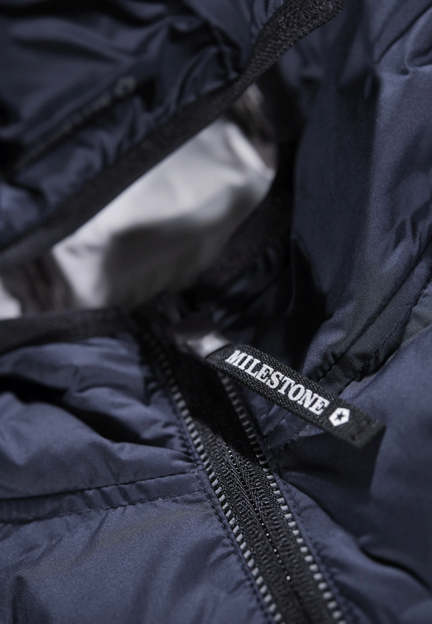 Hoodie mit tailliertem Schnitt. Kragen mit Kinnschutz.Schließt mit Reißverschluss + RV-Puller mit Logo-Tape. Spezial-Reißverschluss mit reflektierenden Details..Seitliche Reißverschlusstaschen.Ärmelbündchen, Kapuze und Saum mit elastischem Logo-Tape.Praktische Innentaschen.Logo-Badge am Ärmel.Wärmende Füllung aus 90% Daunen und 10% Federn.