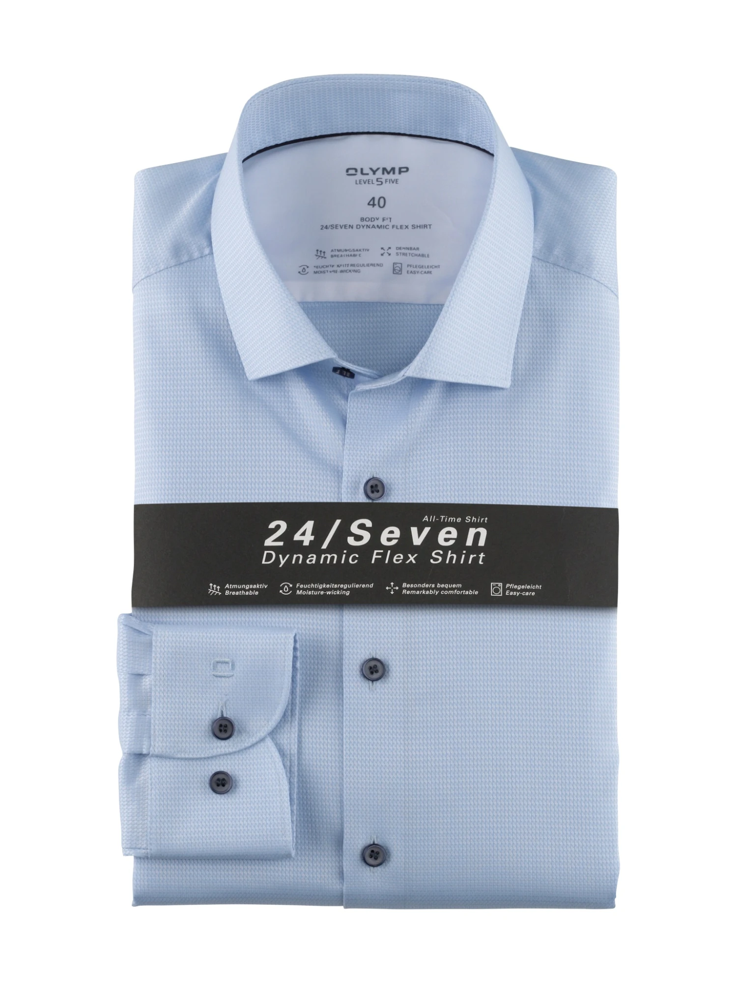 Wer die perfekte Symbiose von Seriosität, Style und Tragekomfort sucht, landet unweigerlich bei den 24/Seven All-Time-Shirts von OLYMP. Dieses hoch moderne Businesshemd begeistert durch einen leichten, elastischen Lyocell-Blend mit dezent schimmernder Schaftstruktur, geschnitten in körpernaher Body-Fit-Passform mit modischem Modern Kent. Ein perfektes Outfit also für die energievolle Performance sowohl im Live-Meeting als auch im relaxten Homeoffice! Ein trendaktuelles OLYMP Level Five, gefertigt in nachhaltiger GREEN CHOICE Qualität