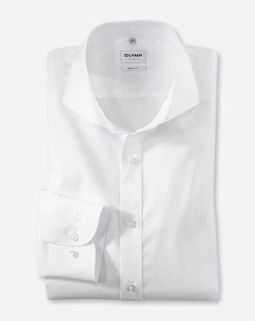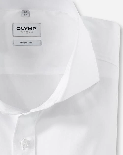 OLYMP Level Five ist das Businesshemd für den schlanken, modebewussten Mann. körperbetonte Schnittführung in Kombination mit modischen Produktdetails. OLYMP Level Five Hemden sind besonders bügelleicht und garantieren einen modisch-souveränen Auftritt. Das unifarbene Weiße Hemd ist ein wahrer Klassiker und bewirkt mit dem modernen Haifisch-Kragen einen zeitgemäßen Look. Die taillierte Body-fit-Passform sorgt für grenzenlose Bewegungsfreiheit dank Comfort Stretch.