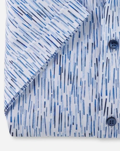 Die zunehmende Auflösung des traditionellen Nine-to-five-Jobs führte zu einer Lockerung der Grenzen auch in modischer Hinsicht. So sind Hemden mit coolen Dessins heute auch im Office akzeptiert, zumal in stilvollen Varianten wie dieses OLYMP Level Five mit grafischem Allover-Print in Bleu. Das Motiv macht das Hemd ideal kombinierbar und harmoniert perfekt mit den bewährten Businessfarben. Ganz klassisch wiederum sind die hochwertige Schnittführung und die beliebte COMFORT-STRETCH-Qualität gestaltet. Überzeugt auch als Kurzarmvariante.