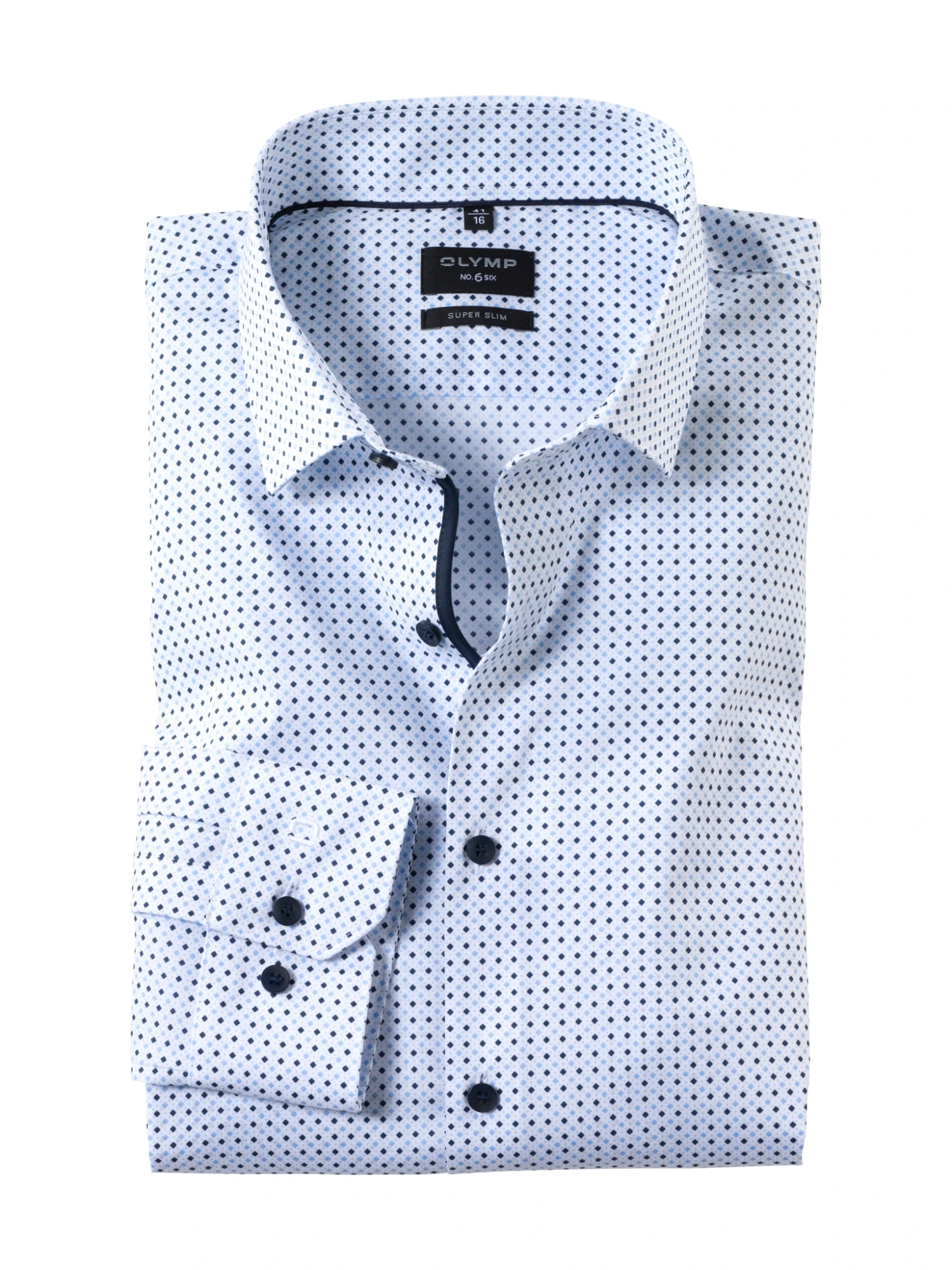 Perfect Match: Die Kombination aus modischem Minimal-Dessin und elegantem Popeline machen dieses OLYMP No. Six zum idealen Business-Begleiter. Die glatte, leicht elastische Comfort-Stretch-Qualität bietet ein hervorragendes Trageerlebnis und macht dank Bügelleichtigkeit auch nach dem Tragen viel Freude. Falls der bewegte Office-Alltag direkt in den Feierabend übergeht – der smarte Frühlingsbegleiter macht auch ohne Krawatte einen erstklassigen Eindruck! Geschnitten im stark taillierten Super Slim Fit. Hier in der Farbstellung Bleu.